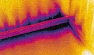 Con la termografia, le infiltrazioni di aria si rilevano generalmente attorno agli infissi, nelle tubature elettriche ed idrauliche, alla base delle murature, negli incroci tra pareti e solai (maggiormente se il solaio è di legno), negli sporti di gronda. Durante il periodo di riscaldamento le infiltrazioni di aria vengono visualizzate come raggi freddi lungo le superfici interne o caldi all'esterno nei punti in cui fuoriesce l'aria calda dispersa. Questi movimenti di aria si riscontrano anche nelle intercapedini e su pareti isolate.
