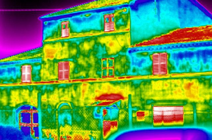 La termografia, fatta in condizioni controllate, permette di individuare a distanza zone di distacco di intonaco o di rivestimenti sia interni che esterni.
